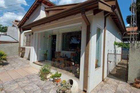 Casa com três dormitórios sendo duas suítes com armários; sala de estar; sala de jantar; lavabo; copa/cozinha com armários; despensa; lavanderia; churrasqueira com banheiro.